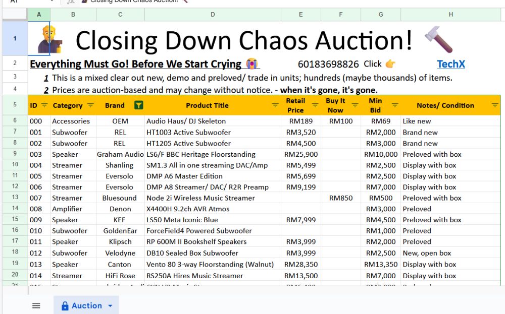 Several audiophiles had expressed concern when TechX posted on Facebook today: “Why is TechX closing down & why is everything being auctioned?” They were surprised as TechX was seen as a vibrant company with innovative ideas. I have confirmed with Thiban of TechX that his company is not closing down.