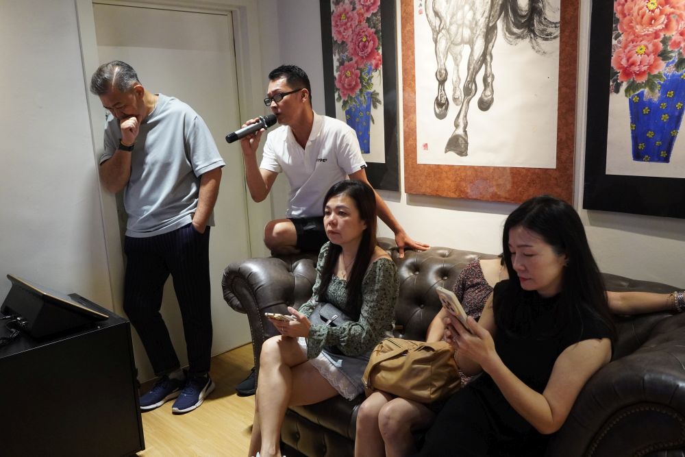 The guests checked out the systems on demo and some even tried the karaoke system in the rear room. For some of the guests, Happy Hour started early and chilled cans of beer were passed around.
