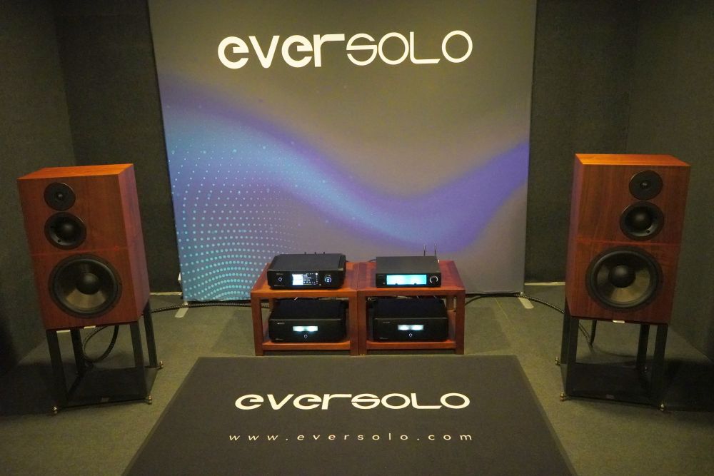 The three-way speakers with dome mid-driver looked old-fashioned, but the sound was fast and furious. The streamer was the Eversolo DMP-A10 connected to the Eversolo DAC Z10.