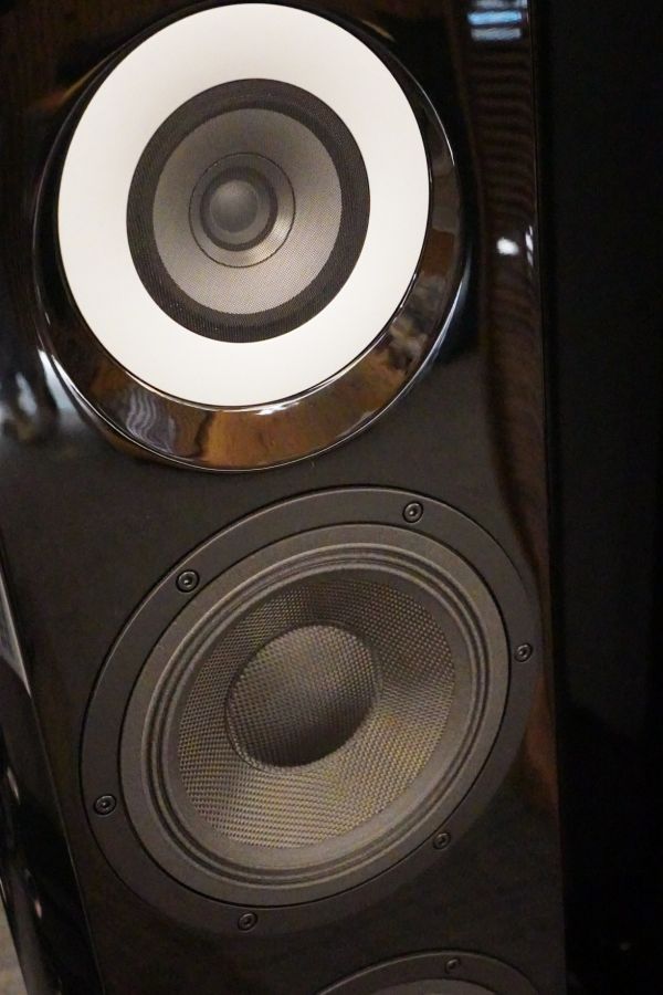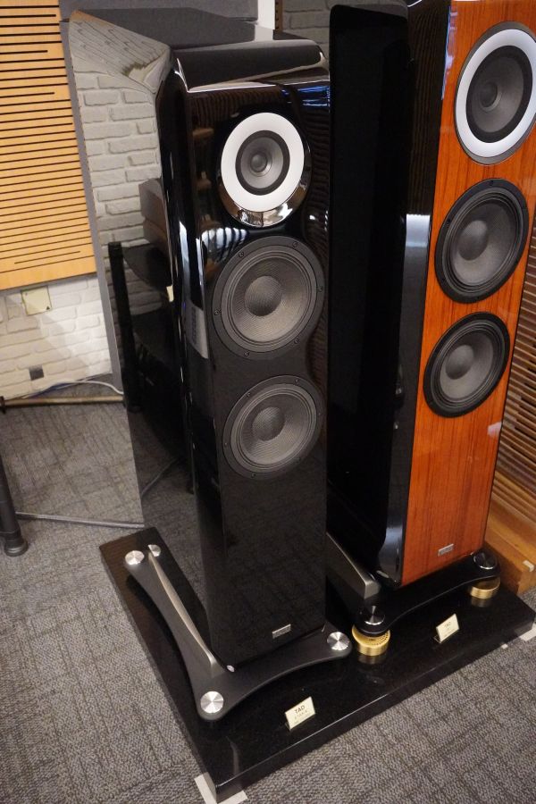 The TAD E1AX-K floorstander features a down-firing port which connects to slots firing to the front and back and its bass goes very low. It also has a rather small co-axial driver featuring a 3.5 inch magnesium cone and a one-inch semi-dome tweeter, but the compact size did not result in small sound.