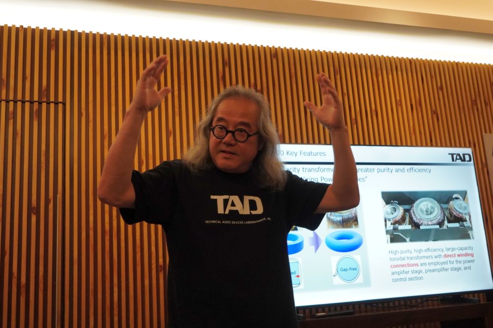A group of audiophiles attended a presentation by Tony Low of AV Designs on the history of TAD and Pioneer and its range of products including amplifiers and speakers.